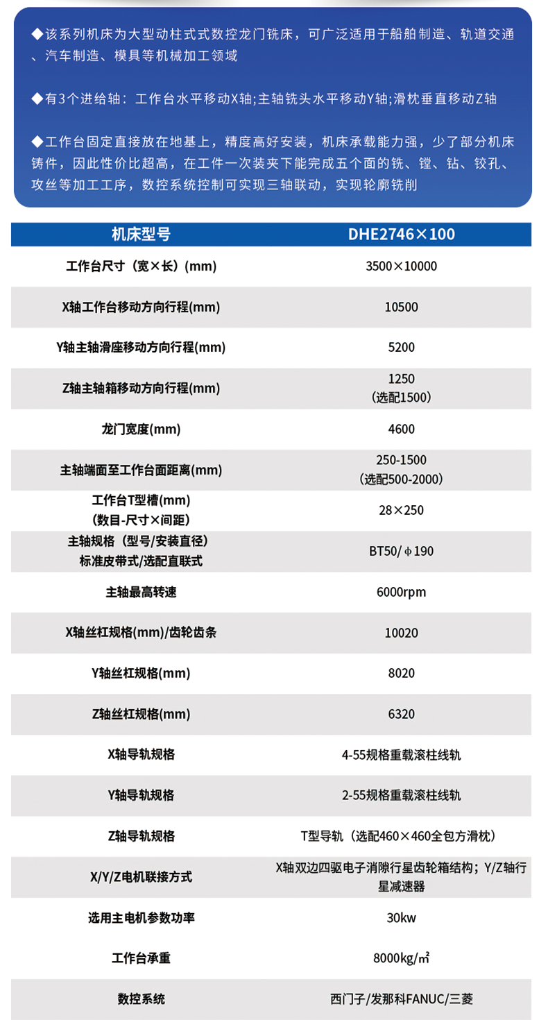 DHE2746x100動(dòng)柱式數(shù)控龍門(mén)銑床